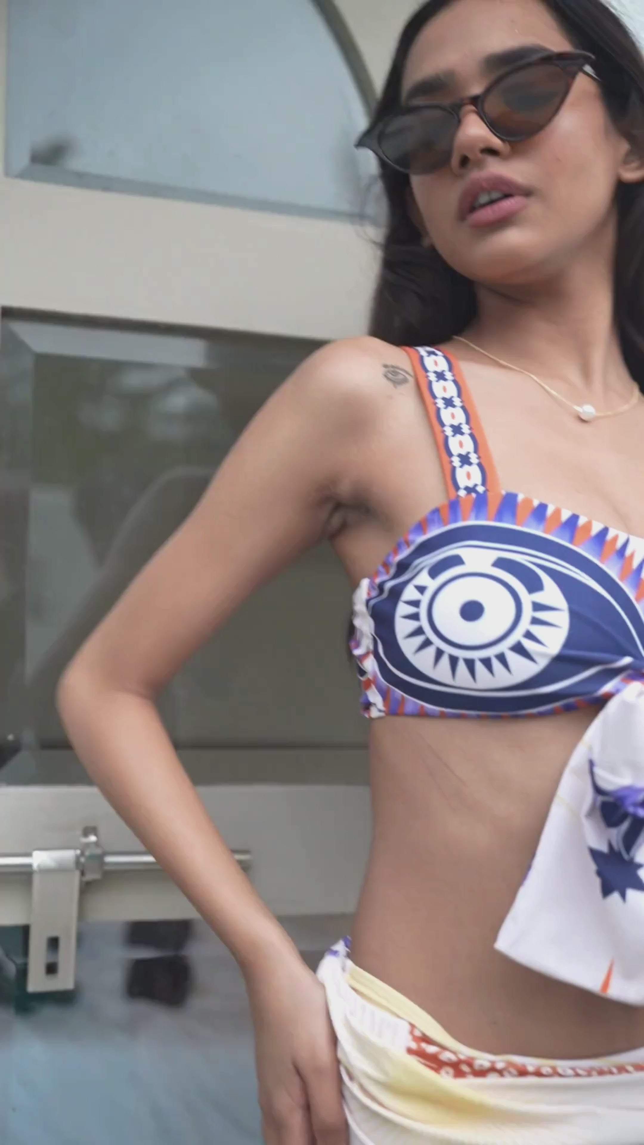 Paired with a matching skirt, this set transitions effortlessly from the beach to a chic resort look. The skirt’s flowing design adds an extra layer of sophistication, perfect for leisurely strolls or an elegant evening out. The Kalahari Echoes Bikini Set with Skirt is designed for the modern woman who embraces both luxury and adventure.